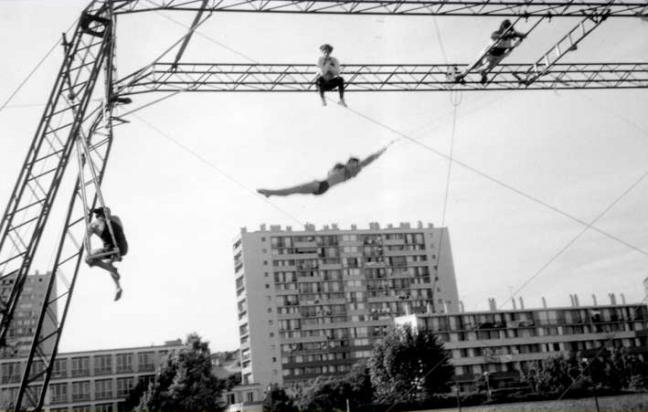 Structures de vingt mètres de haut, qui une fois déployée permet aux artistes de voler en plein air, en plein ciel, mélange harmonieux d'un élement naturel et d'un matériau industriel. Cette structure a été pensée par une classe de BTS du 11e arrondissement de Paris et a été réalisée par nos ateliers.