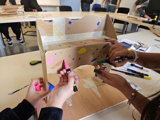 Les participantes et participants ont conçus et construits ensemble un objet fonctionnel pour leur établissement scolaire dédié à un usage collectif, accompagnés d’une technicienne-plasticienne.